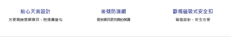 歐規一踩雙煞、磁吸安全扣、後傾防護網,安全更升級 |