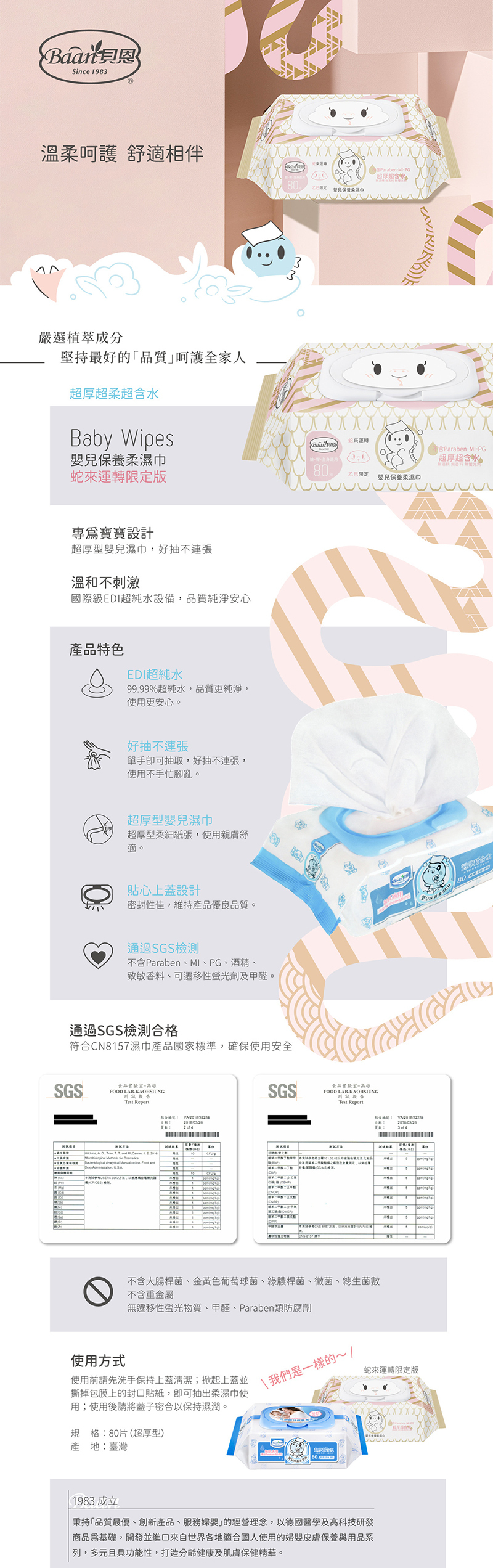 《 Baan 貝恩 嬰兒保養柔濕巾 》