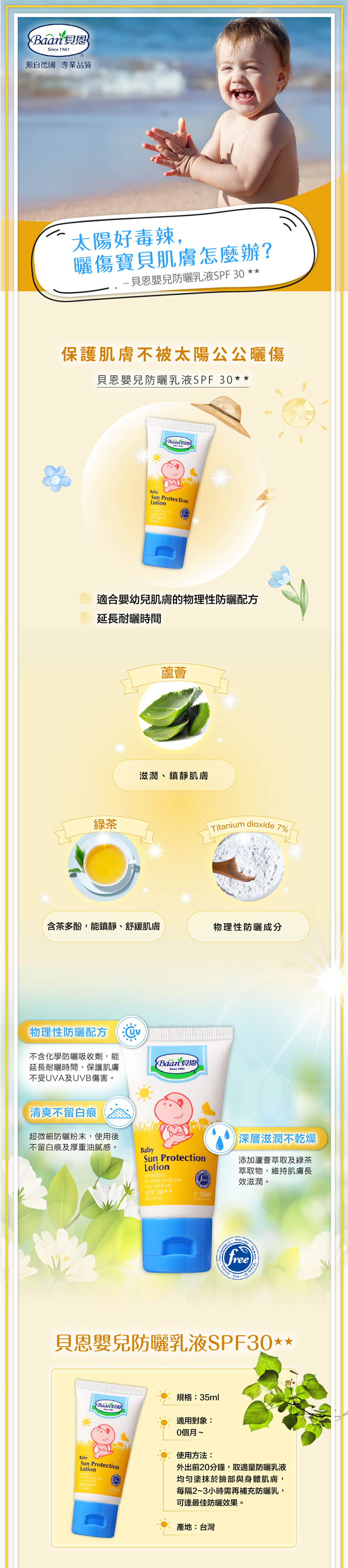 Baan 貝恩 嬰兒防曬乳液SPF30★★