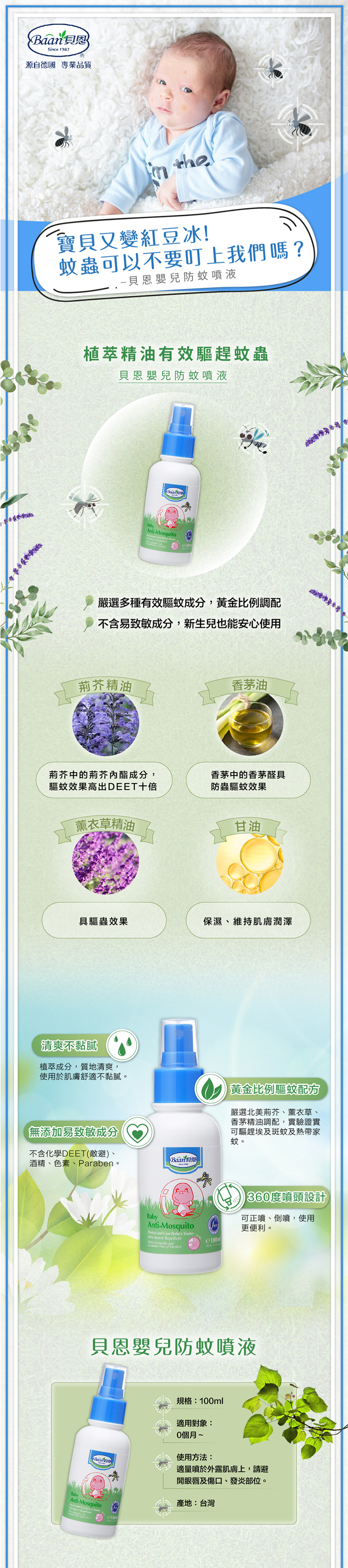 《 Baan 貝恩 嬰兒防蚊噴液 》