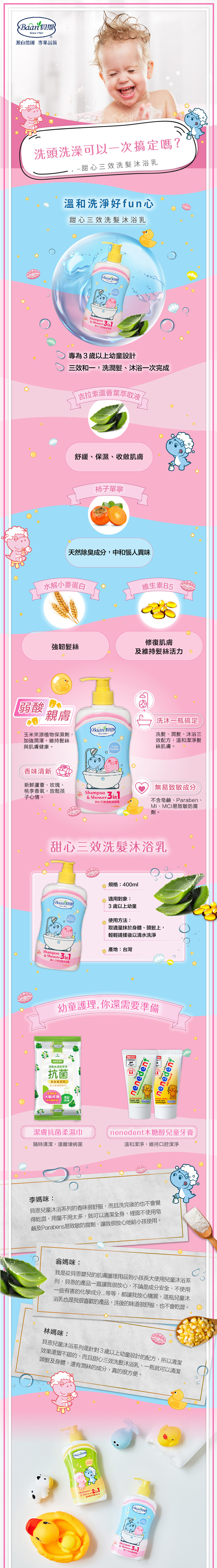 Baan 貝恩 甜心三效洗髮沐浴乳400ml
