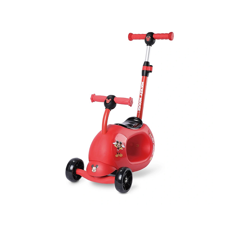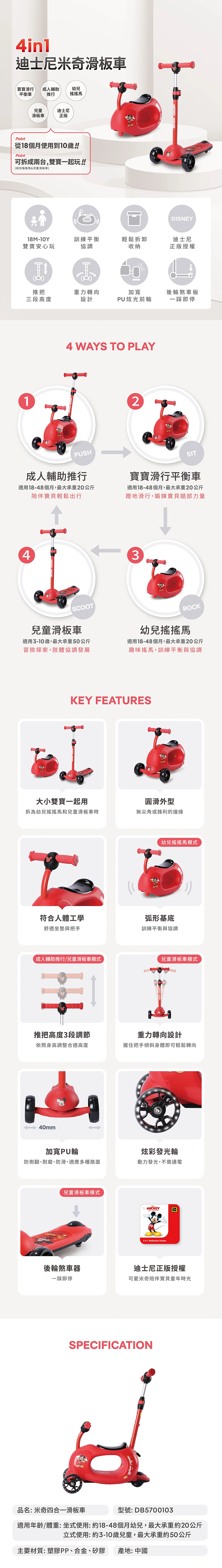 迪士尼正版授權四合一滑板車,適合18個月-10歲的兒童,輕鬆摺疊收納,可拆成幼兒搖搖馬及兒童滑板車,雙寶一起玩。