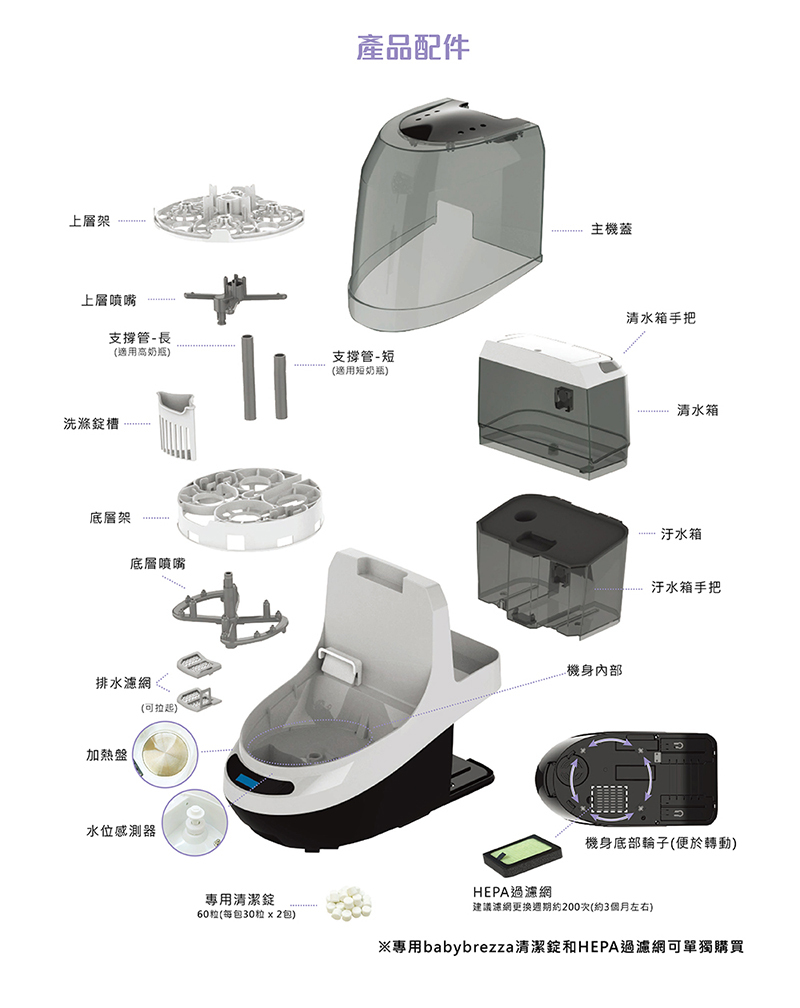 配件    ➤ 中文說明書、保固卡、附贈專屬清潔錠60粒