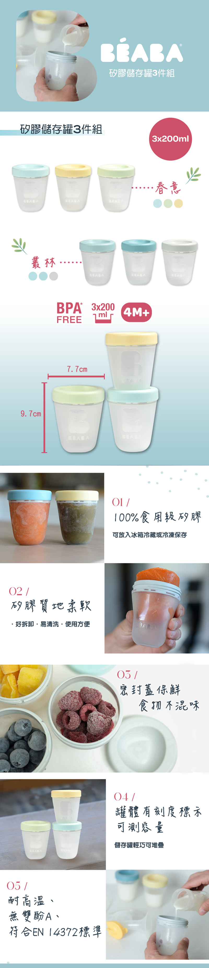 Beaba 矽膠儲存罐3件組(3x200ml)