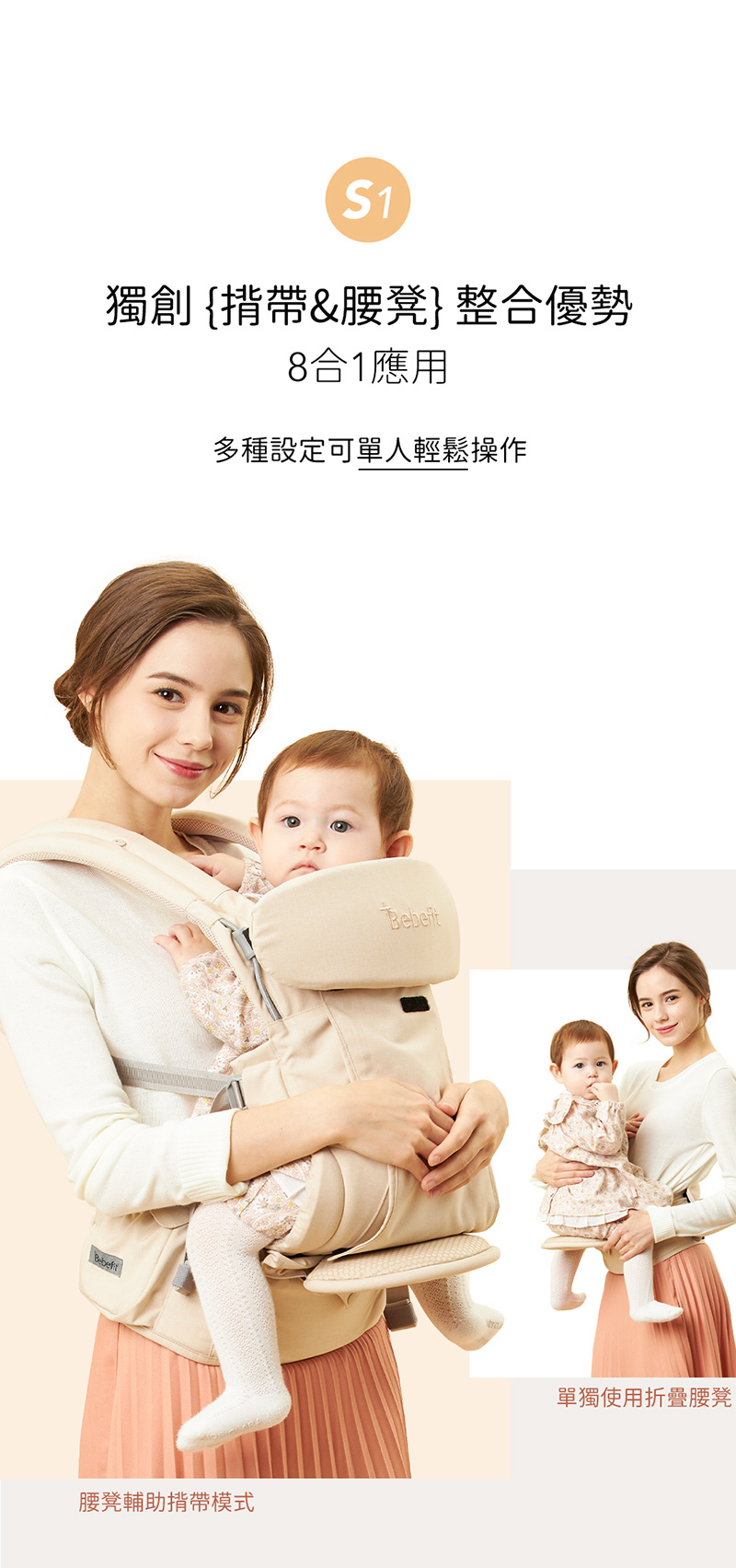 S1 設計|獨創 {揹帶+折疊腰凳} 整合 8+種揹法