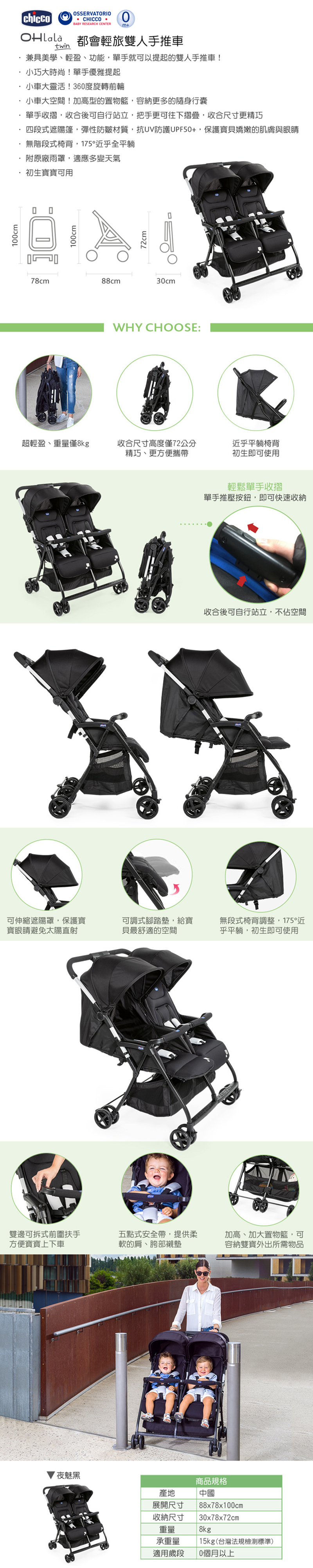 ▲Chicco Ohlalà 都會輕旅雙人手推車