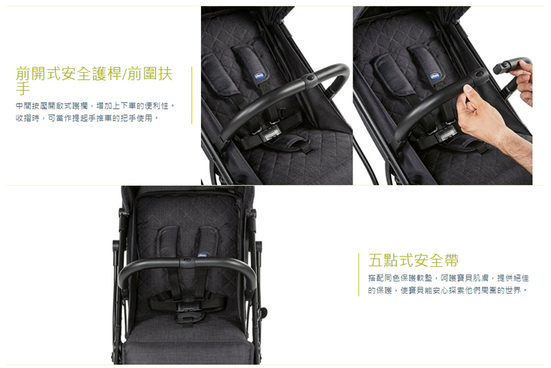 五點式安全帶及保護軟墊,提供純佳保護 |