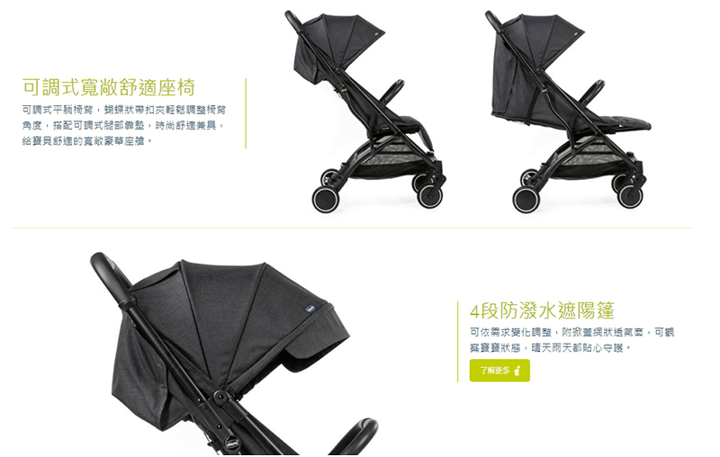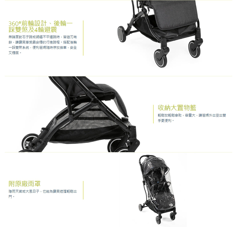 四段防潑水遮陽蓬附網狀透氣窗、超大置物籃空間 |