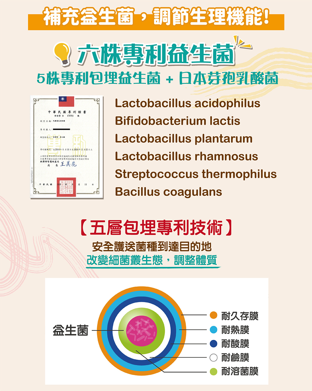 | ● | 專利五株益生菌 |
