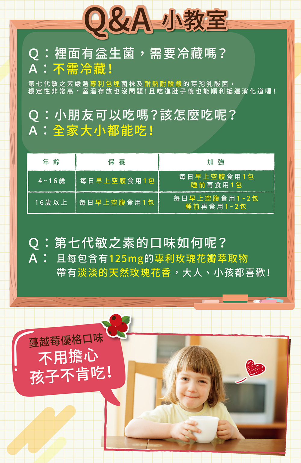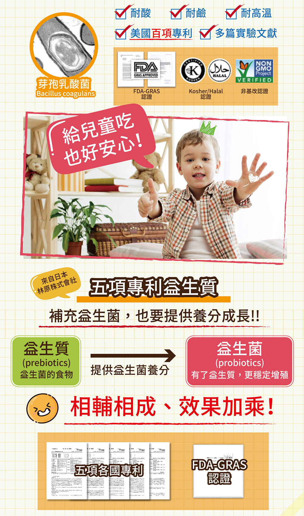 | ● | 六株專利益生菌,兒童吃也好安心 |