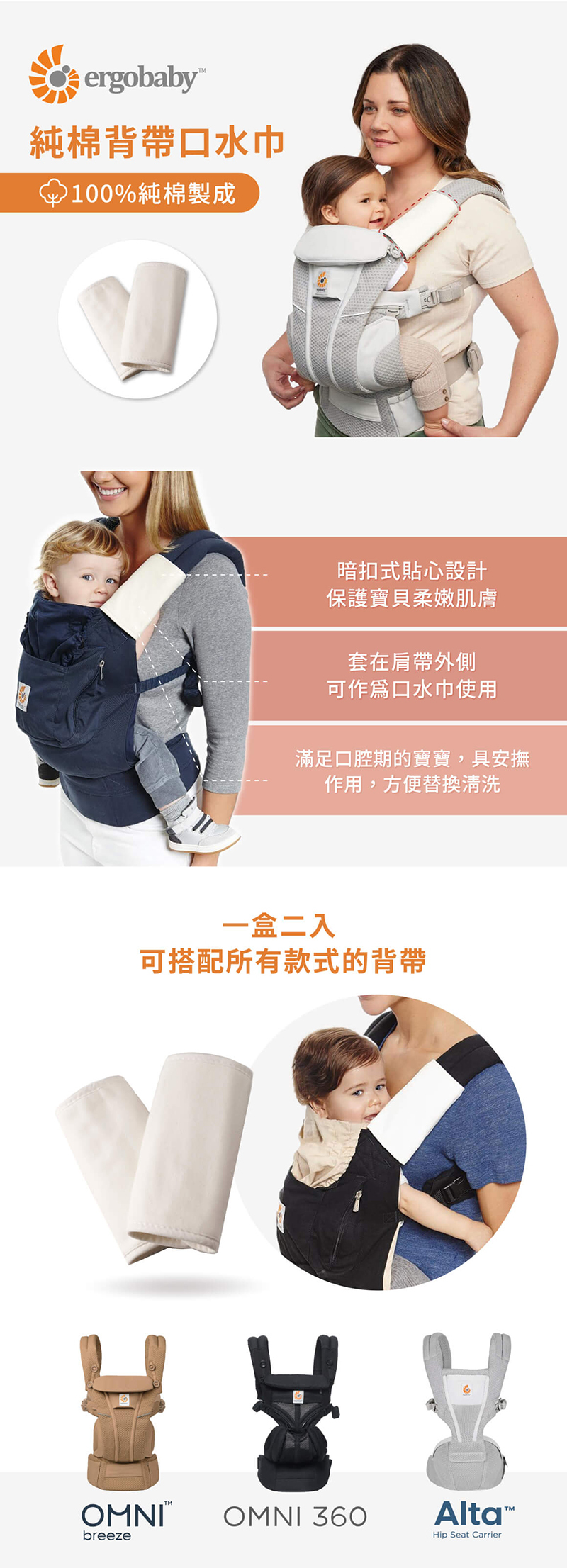 100%純棉製作,可搭配所有款式背帶,套在肩帶外側可作為口水巾使用。