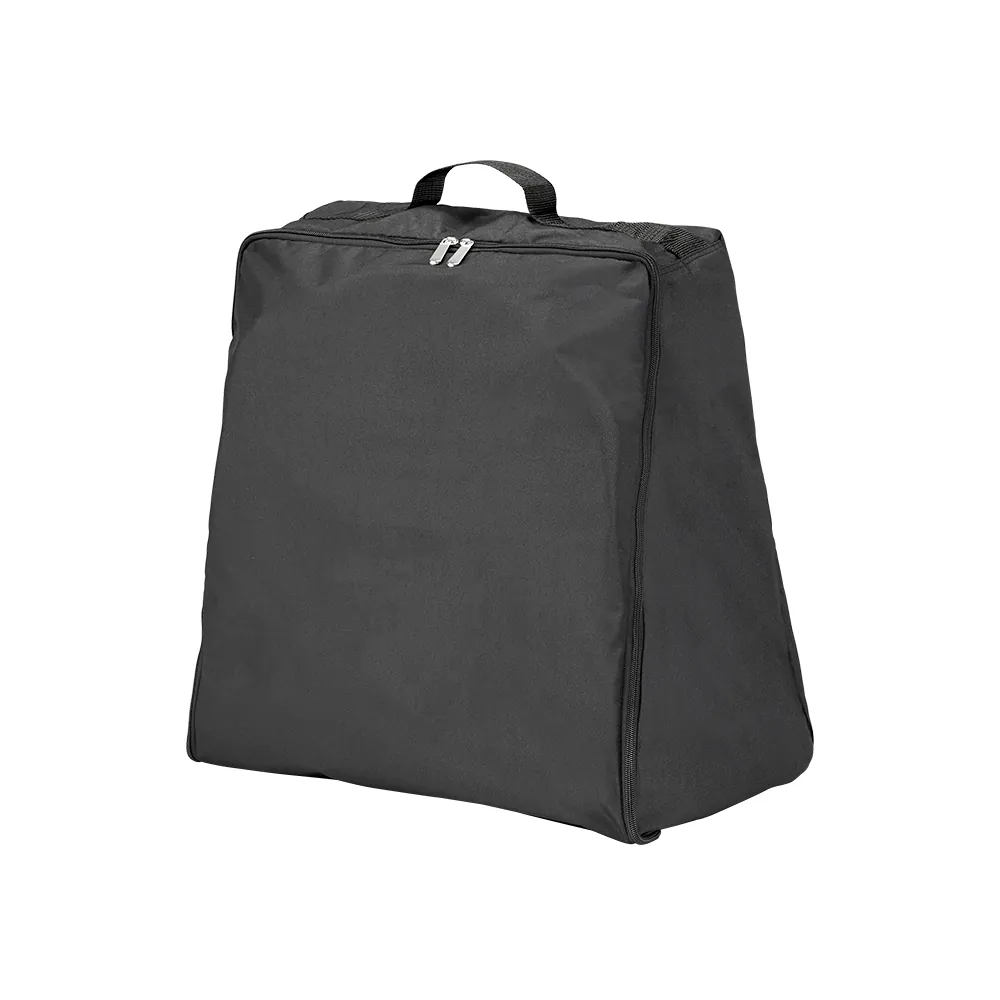 2.將收納袋拉鍊拉到底,敞開袋口,放入推車後,將拉鍊完全拉上。