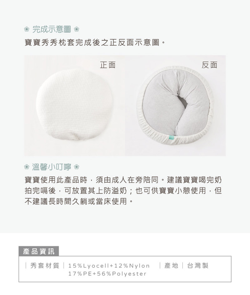 此商品僅售枕套,需搭配孕婦枕使用(任一尺寸適用),供寶寶小憩使用,不建議久躺或當床使用。