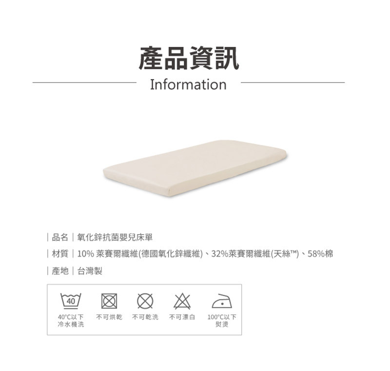 ※此賣場僅販售"氧化鋅抗菌嬰兒床單",不含其他配件