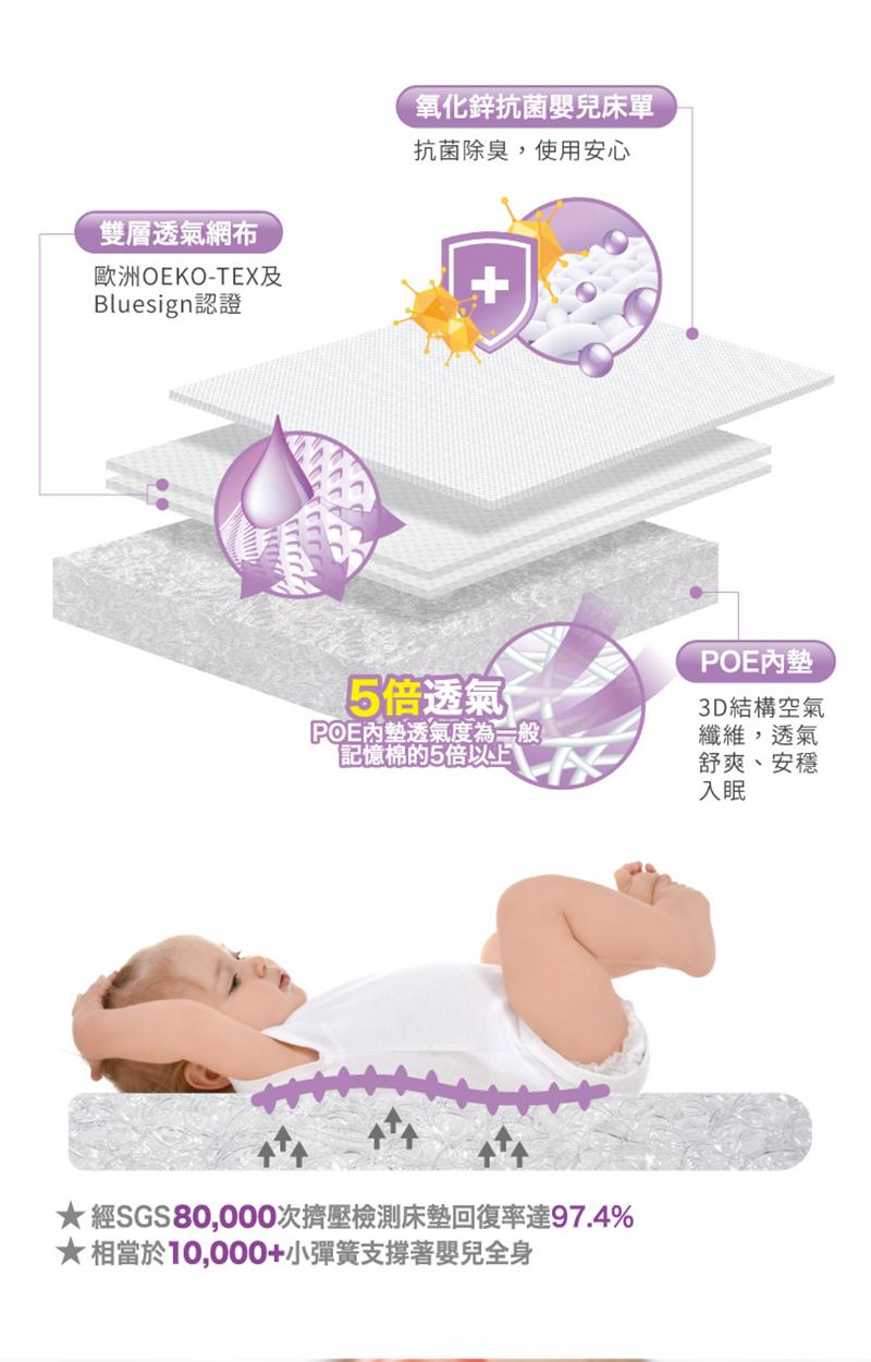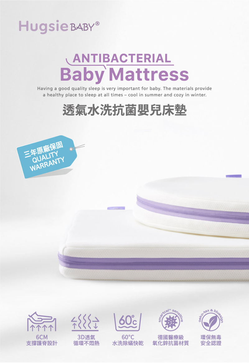 《 HugsieBABY透氣水洗嬰兒床墊 》