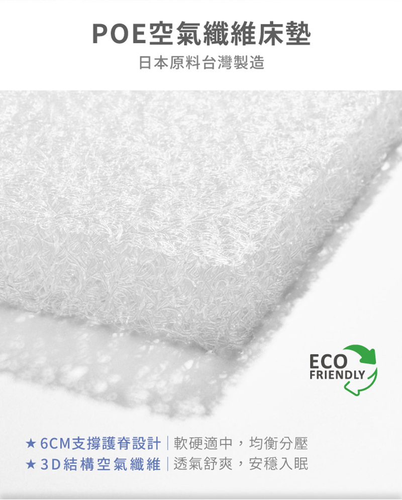 6cm支撐護脊設計,軟硬適中均衡分壓 |