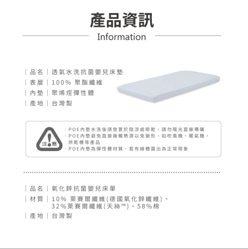 適用 ➤ 厚度15cm以內嬰兒床墊