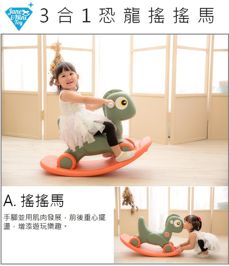 《 JN.Toy 3合一恐龍搖搖馬 》