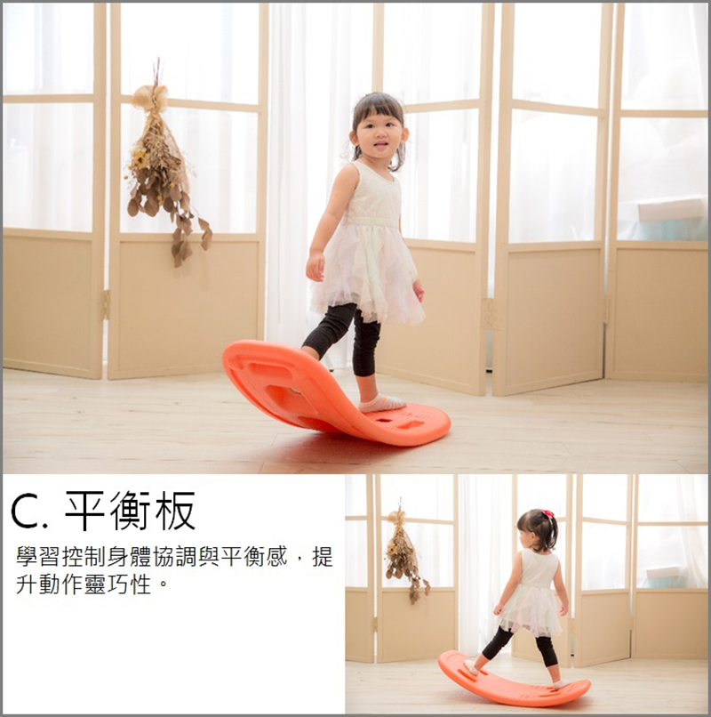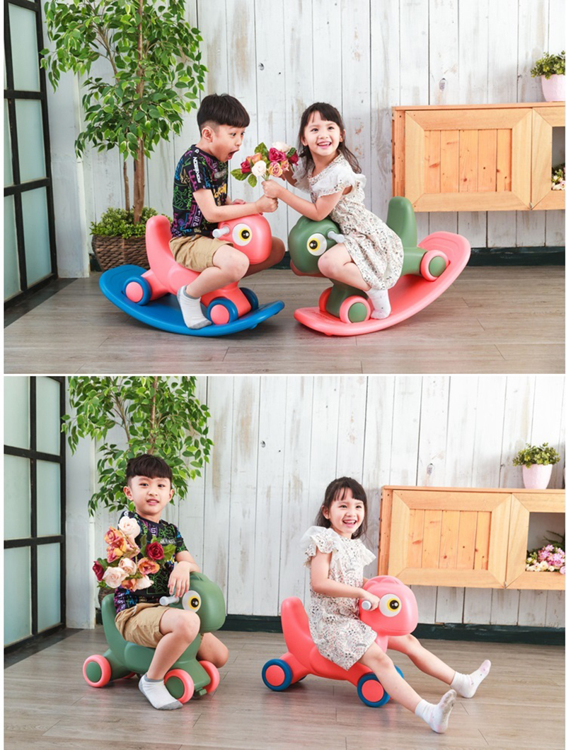 三合一設計,有嚕嚕車、搖搖馬、平衡板多種玩法。