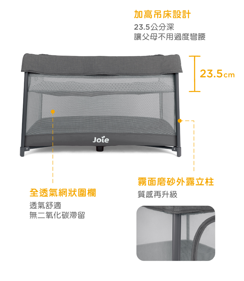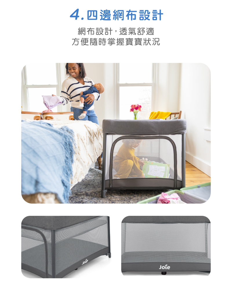 四邊網狀圍欄,通風透氣減少悶熱感 |