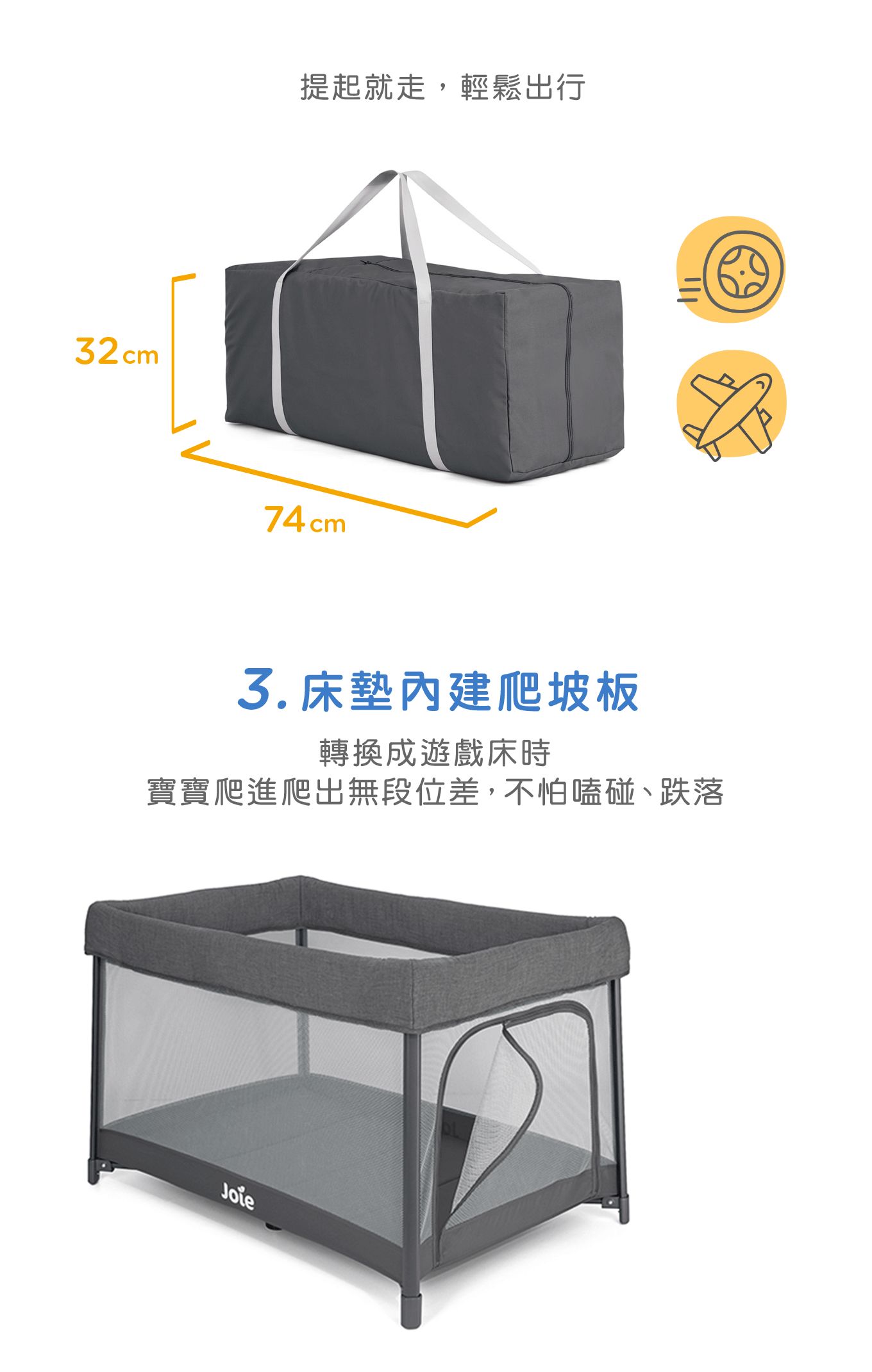 床墊內建爬坡板,寶寶進出遊戲無段差 |