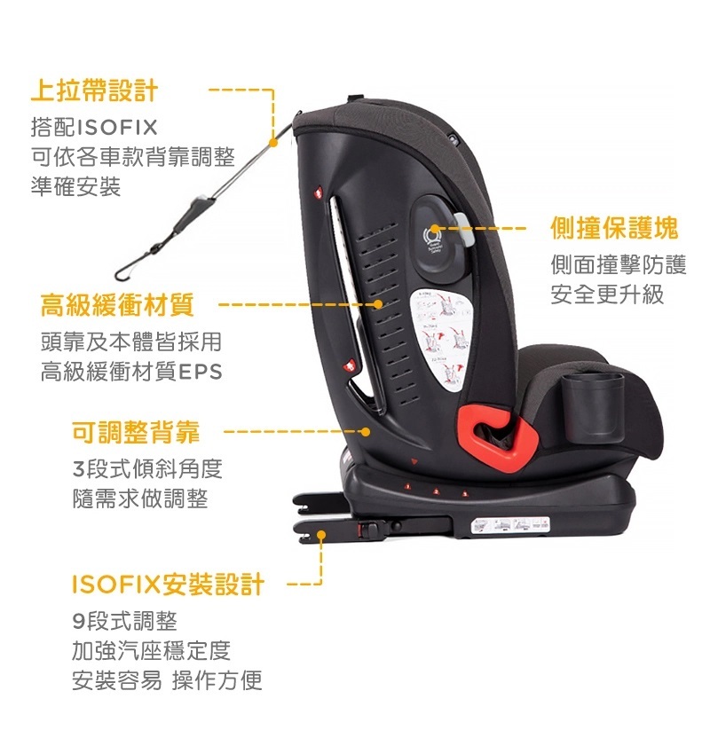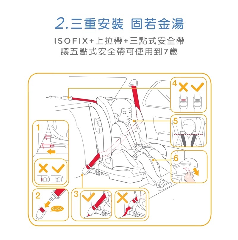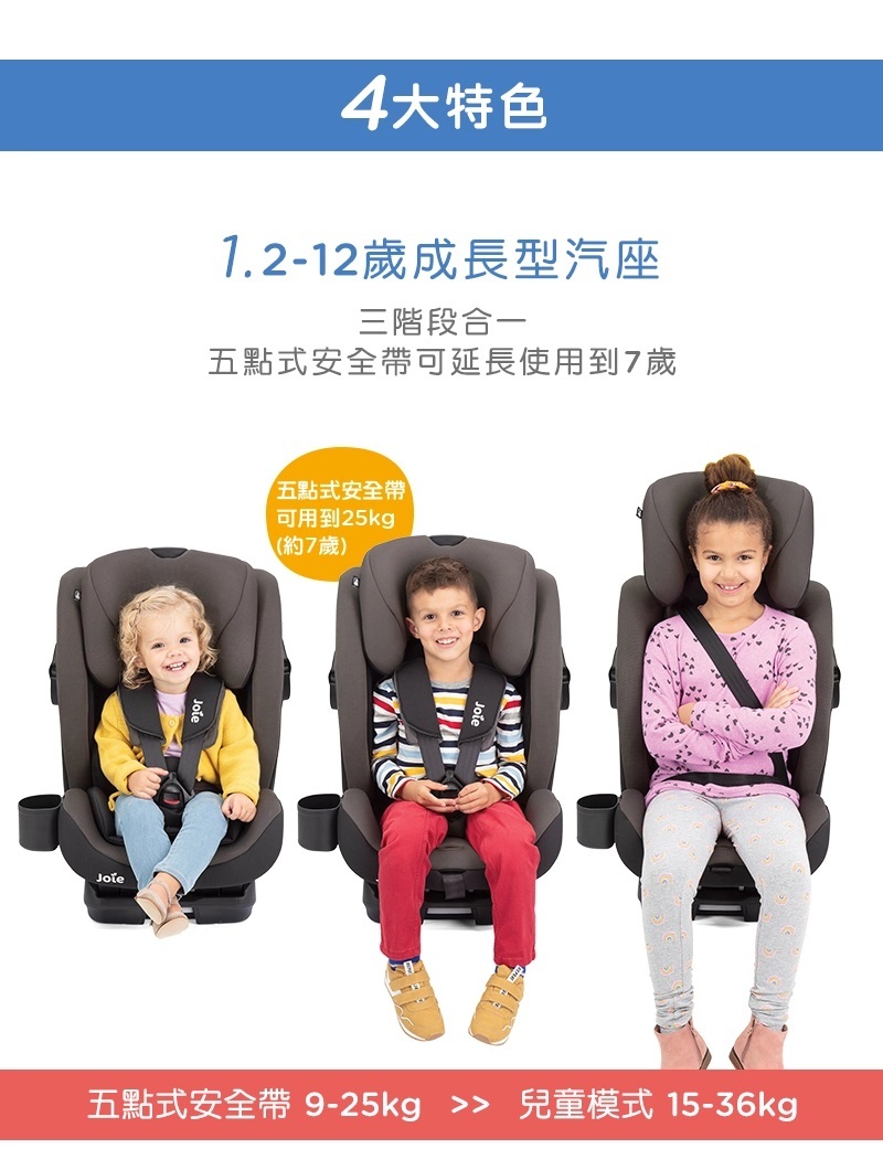 適用年齡   ➤ 五點式安全帶:9-25kg/2-7歲