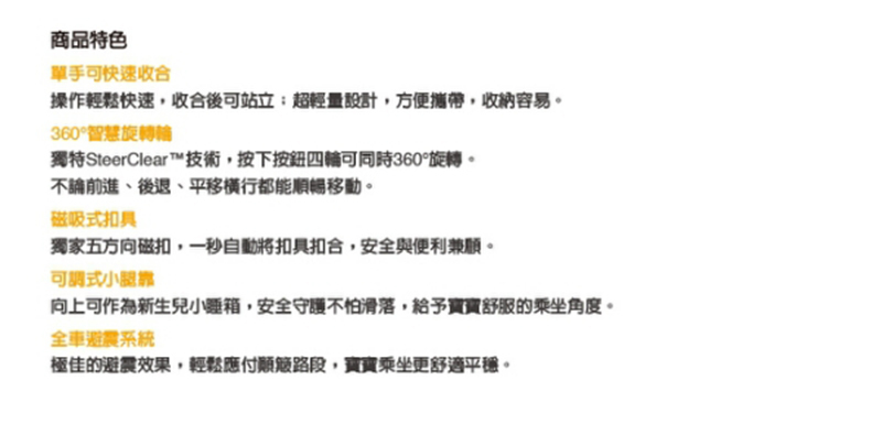 9.超載或不正確的折疊及使用非經核准的零附件都可能造成手推車損壞、故障或不安全,使用前請務必閱讀說明書