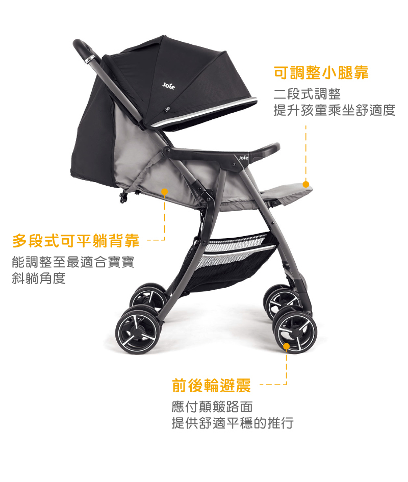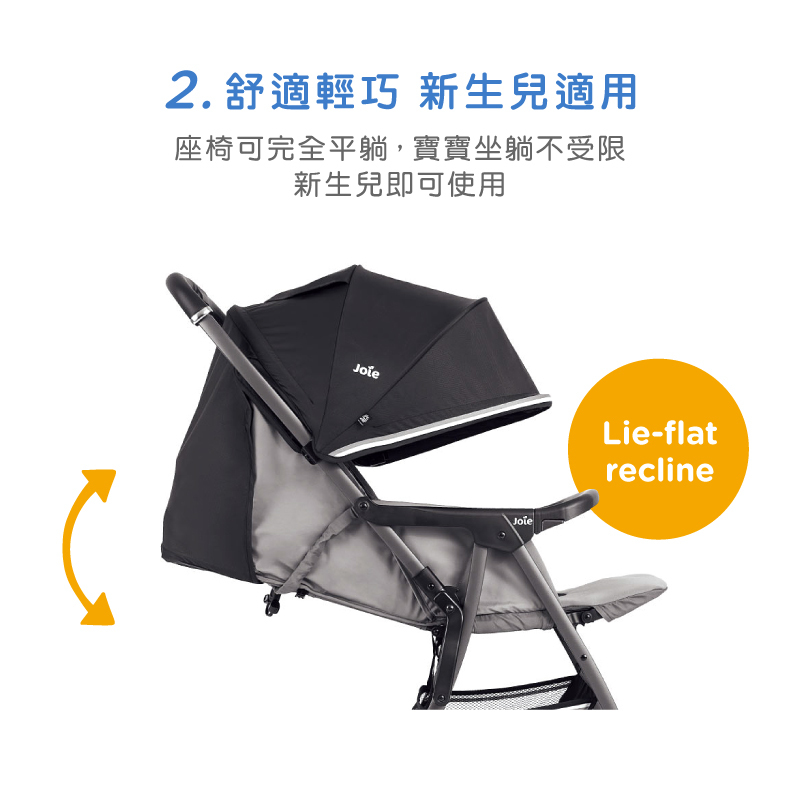 無段式可平躺背靠,最適合寶寶的斜躺角度 |