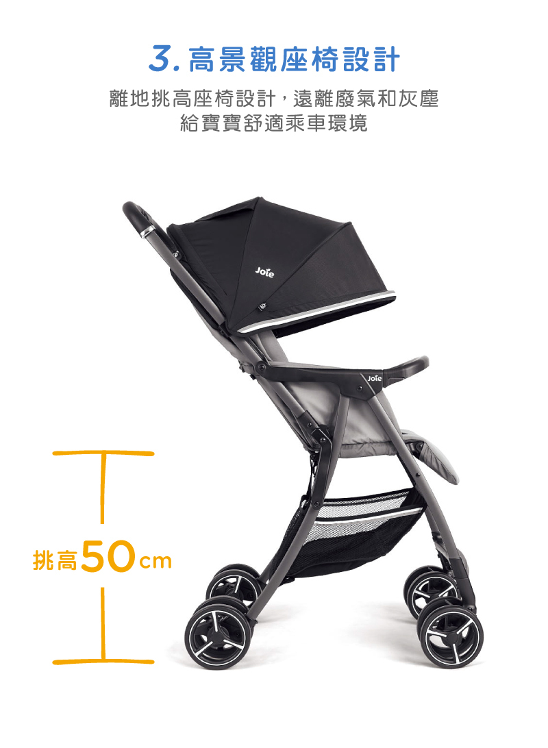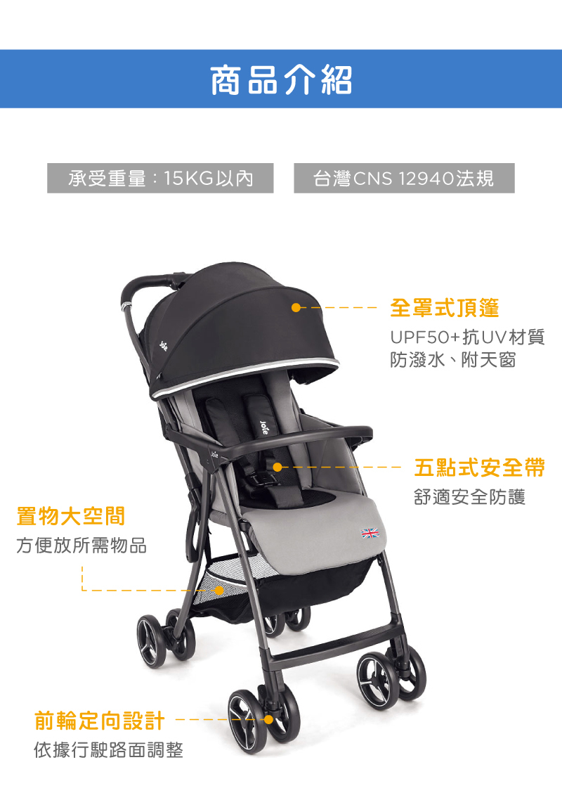 UPF50+防曬防潑水頂篷,提供完美遮擋 |