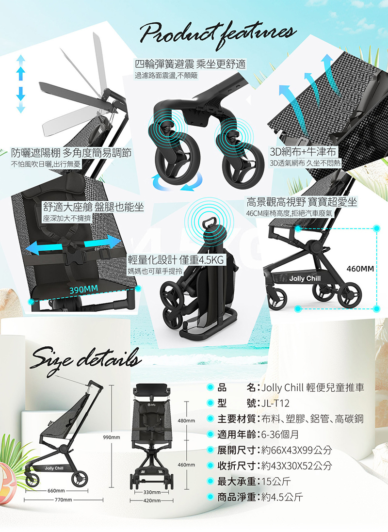 輕量化設計僅重4.5kg!輕便出門的好伙伴,舒適大座艙、高景觀高視野寶寶超愛坐!