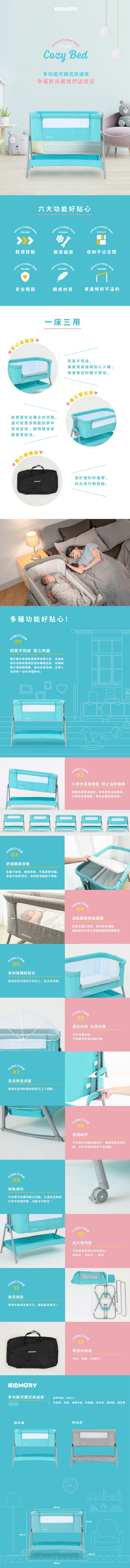 內容物 ➤ 床墊、床圍布套、床護欄、床支架、置物籃、固定帶