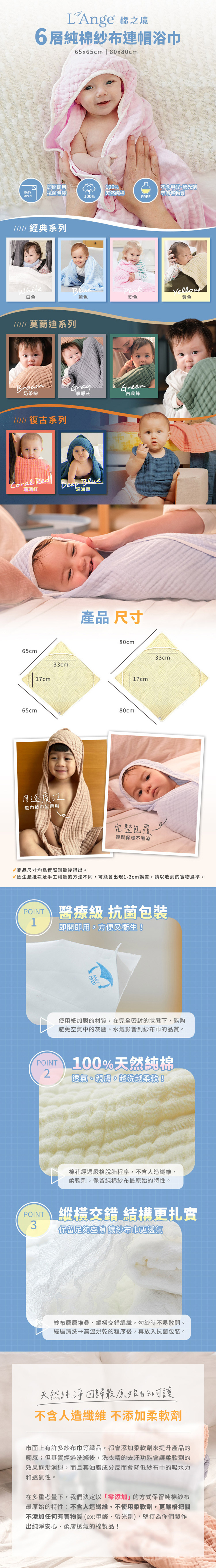 《 L'Ange 棉之境 6層純棉紗布連帽浴巾 》