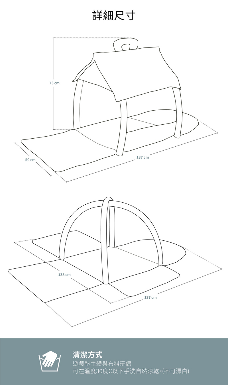 附贈配件 ➤ 屋柱拱門支架、吊掛安撫玩偶*6