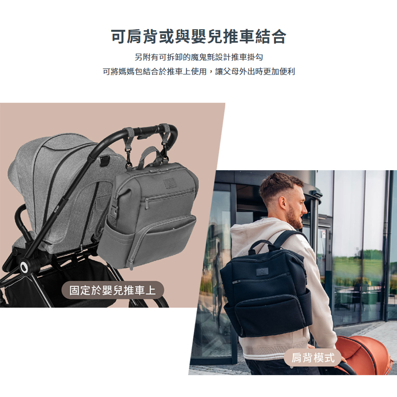 媽媽包也要時尚!12隔層設計、側邊有貼心容量調節扣可調整包包尺寸,增加收納空間!完美支援大人小孩外出需求。
