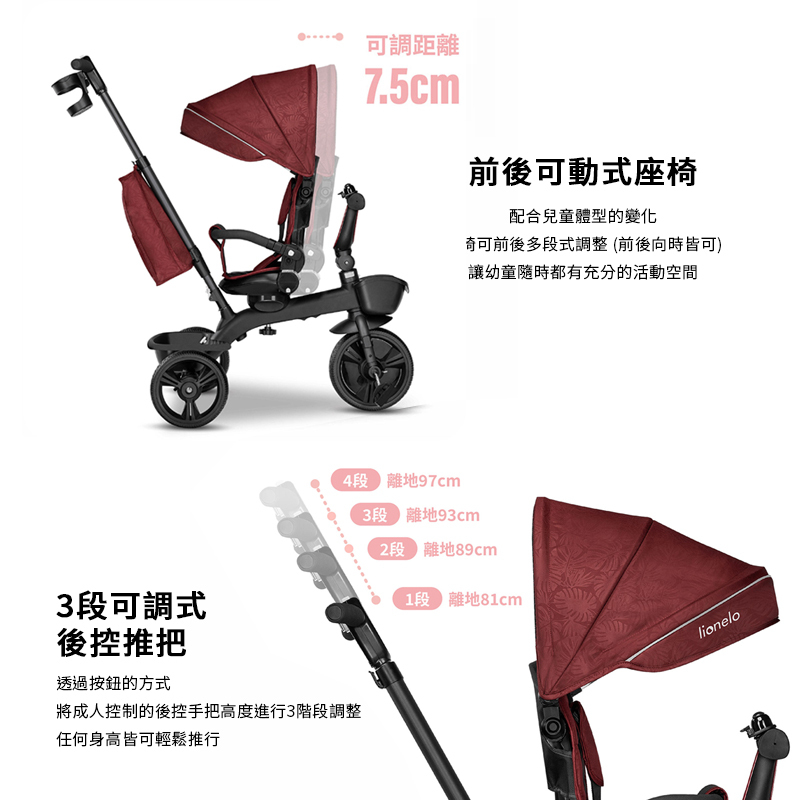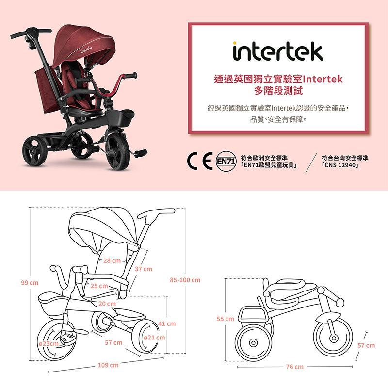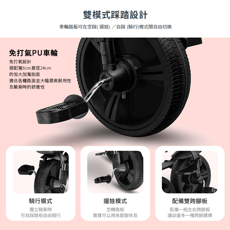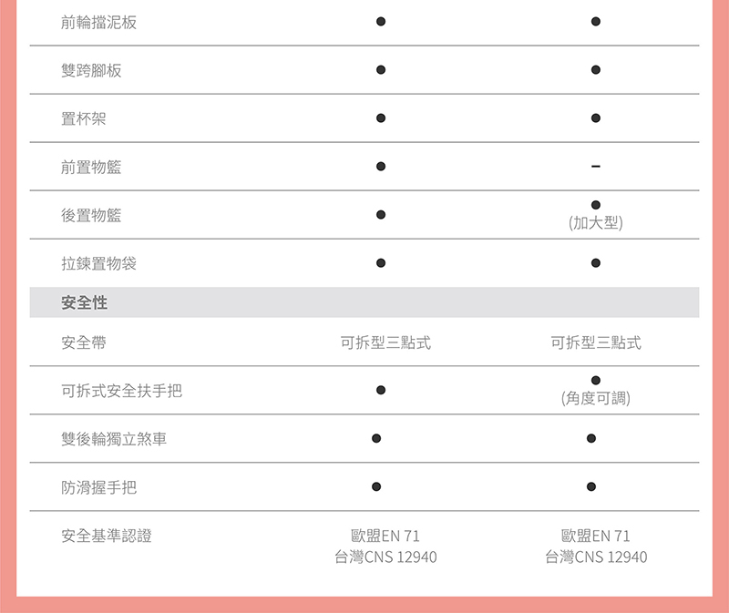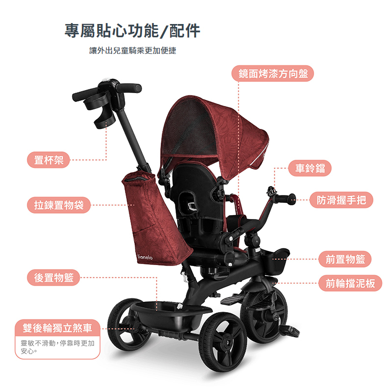 附贈配件 ➤ 置杯架、前置物籃、後置物籃、拉鍊置物袋、車鈴鐺