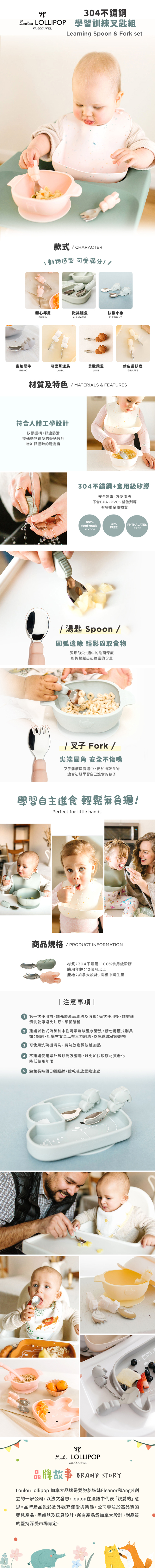 Loulou Lollipop 動物造型 304不鏽鋼學習訓練叉匙組