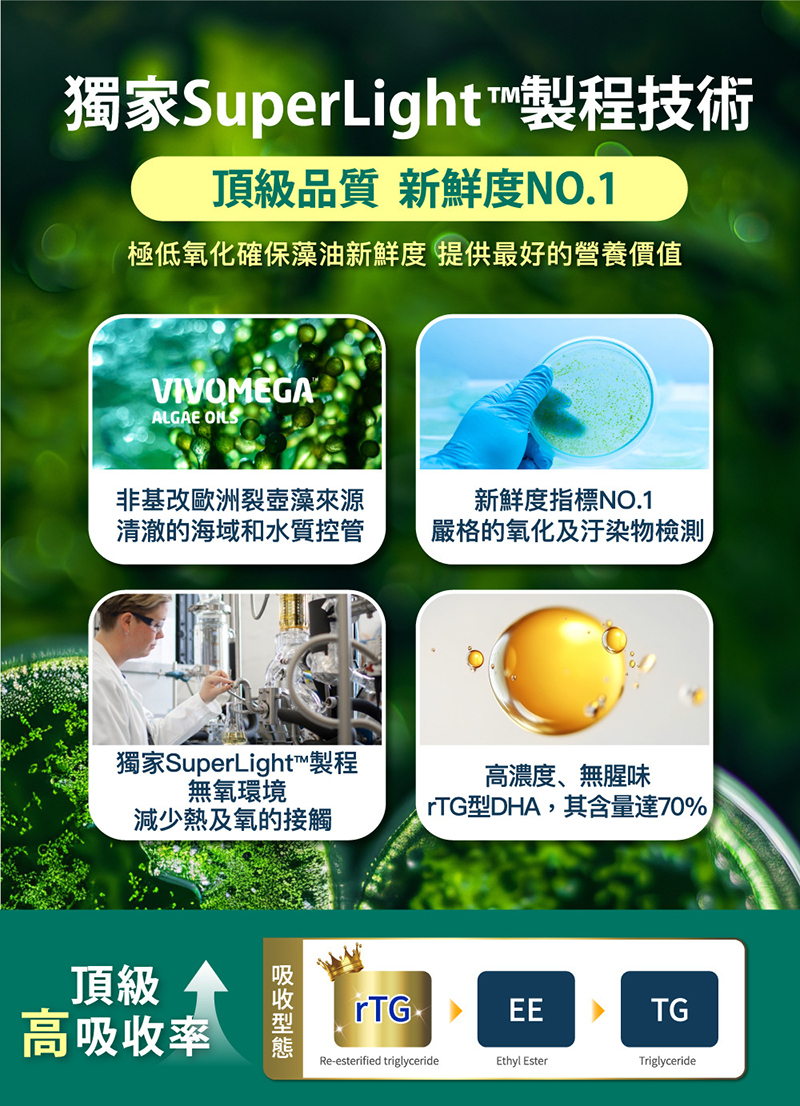 70%極高濃度DHA,極佳吸收rTG型態 |
