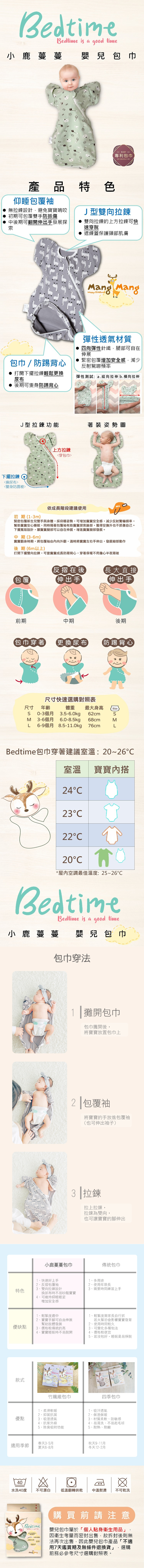 2.使用此包巾時請讓寶寶仰睡不可趴睡,避免床被覆蓋寶寶臉部或遮住口鼻