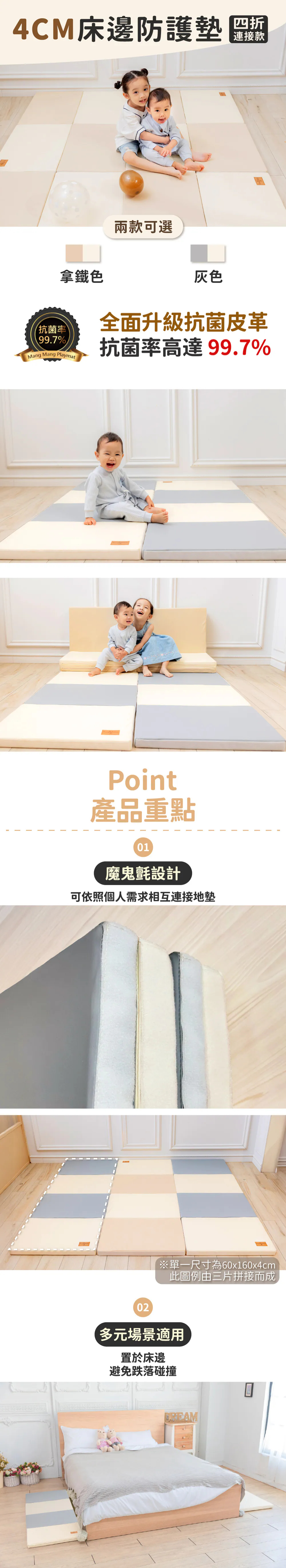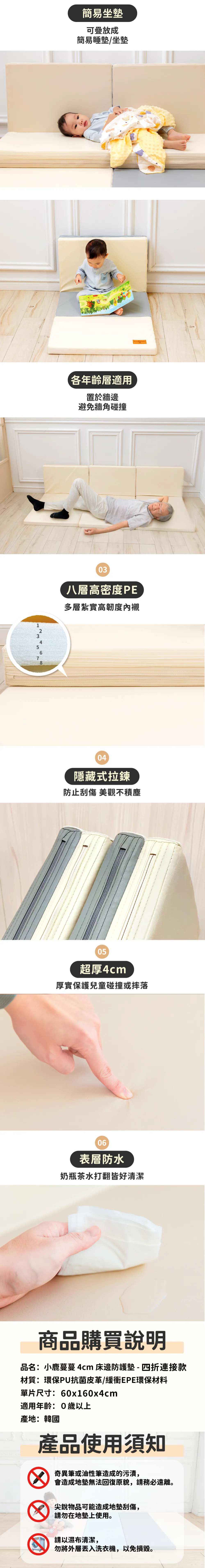 Mang Mang 小鹿蔓蔓 兒童4cm抗菌摺疊防護地墊/床邊墊(四折連接款)