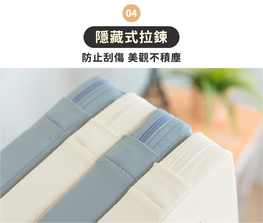 隱藏式拉鍊防止刮傷、外層防水好清潔