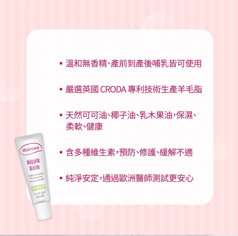 幫助親餵的媽咪們修護受傷的乳頭,對孕婦以及嬰兒百分之百的安全。