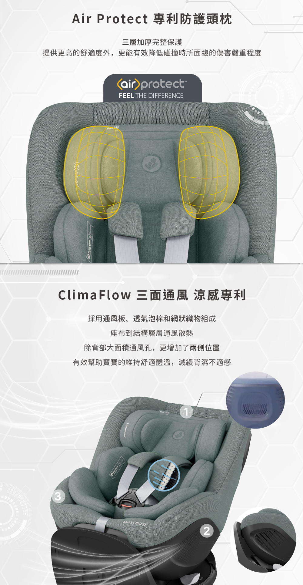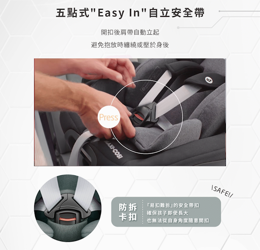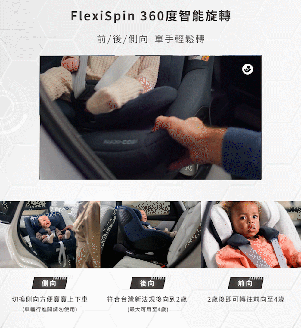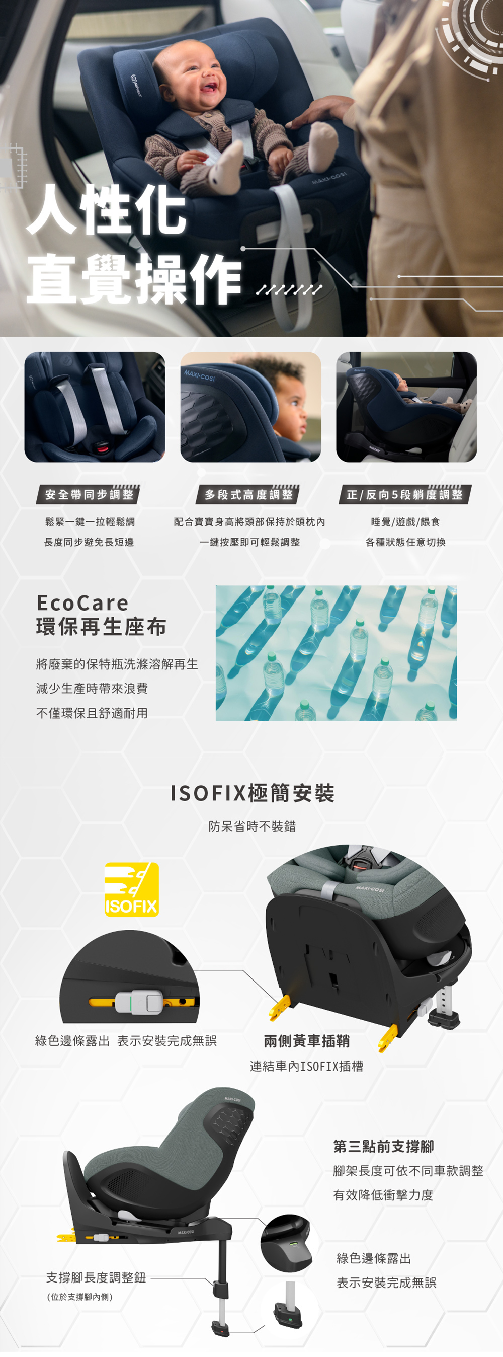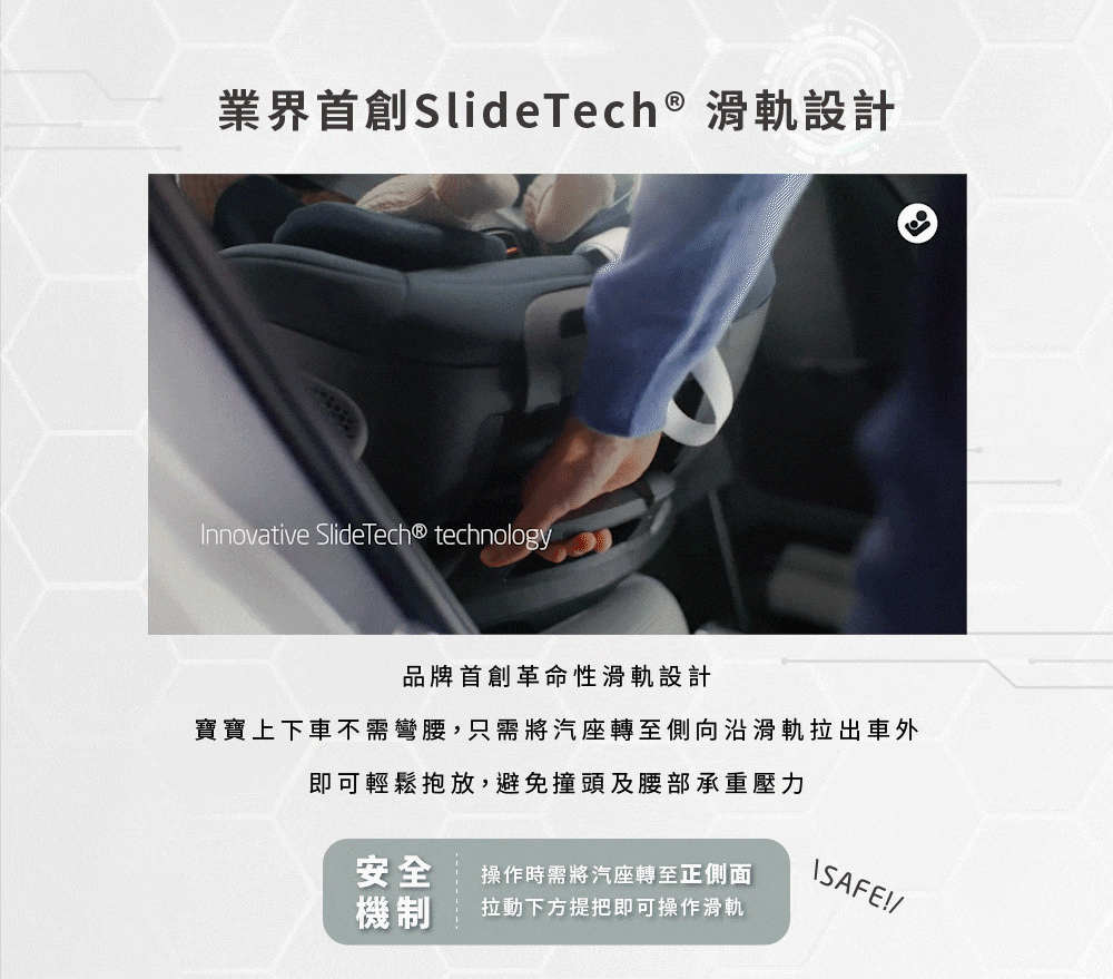 首創可將汽座轉至側面沿著滑軌拉出 |