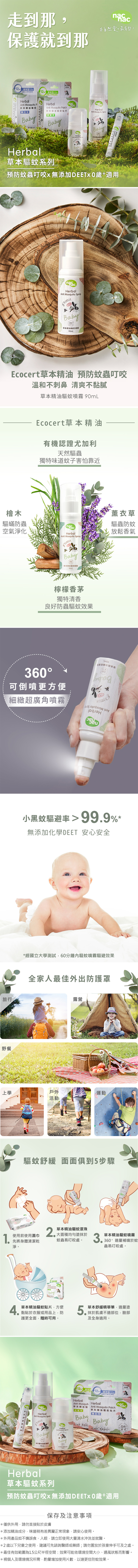 添加複方草本精油,有效預防蚊蟲叮咬,清新草氣味舒緩鎮靜。