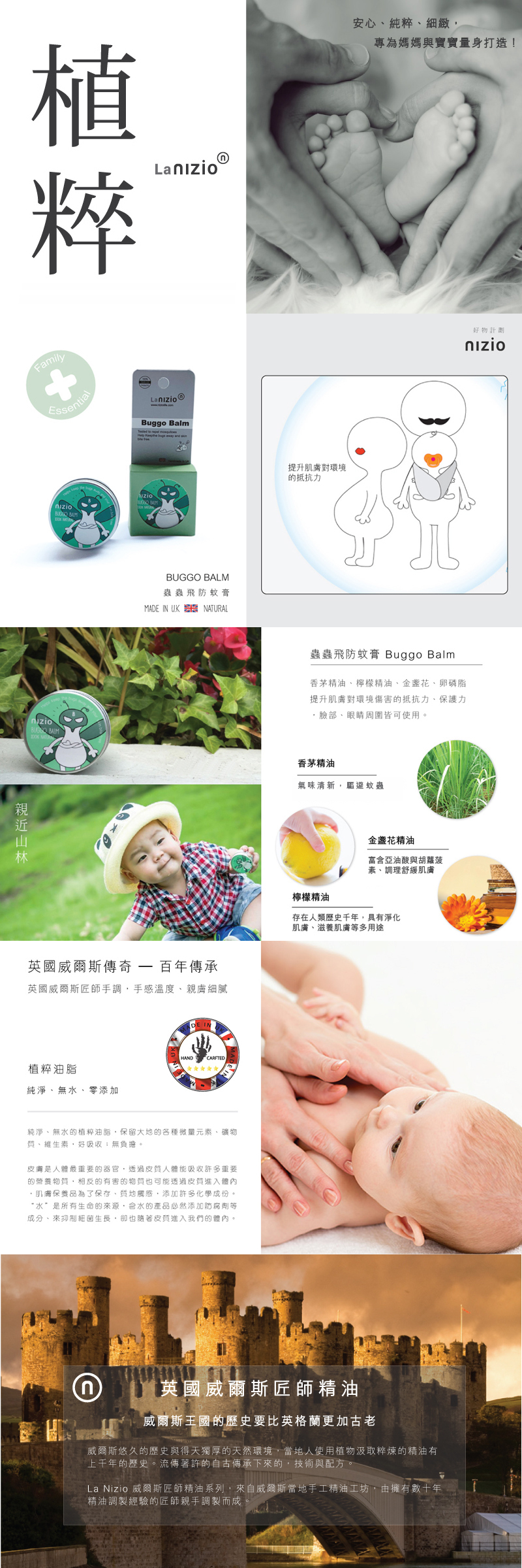 來自英國威爾斯匠師精油,大自然的植萃配方,掩飾肌膚表層散發吸引蚊蟲的體味,幫助趨避蚊蟲,安心享受戶外時光。