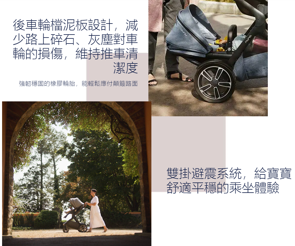 雙掛避震系統,給寶寶舒適平穩的乘坐體驗 |
