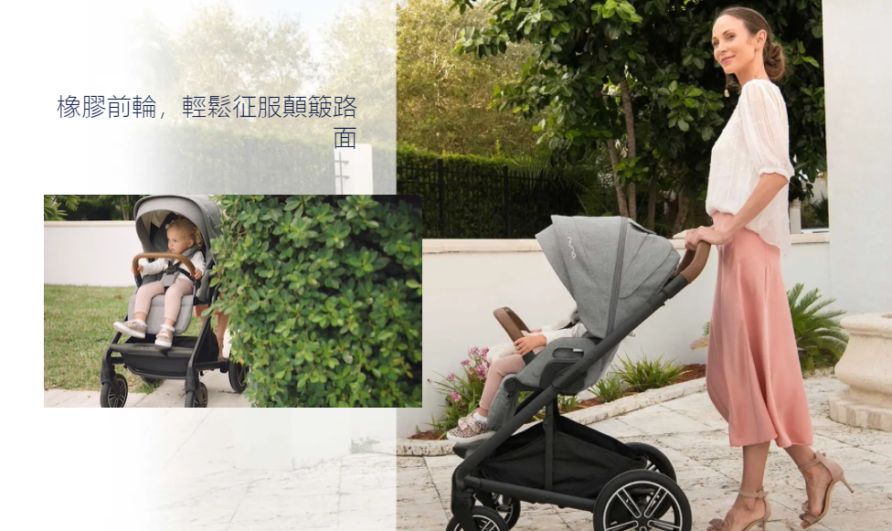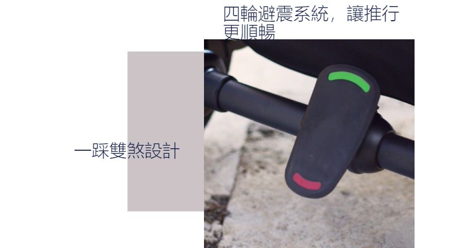 四輪避震系統,前輪可定向讓推行更順暢 |