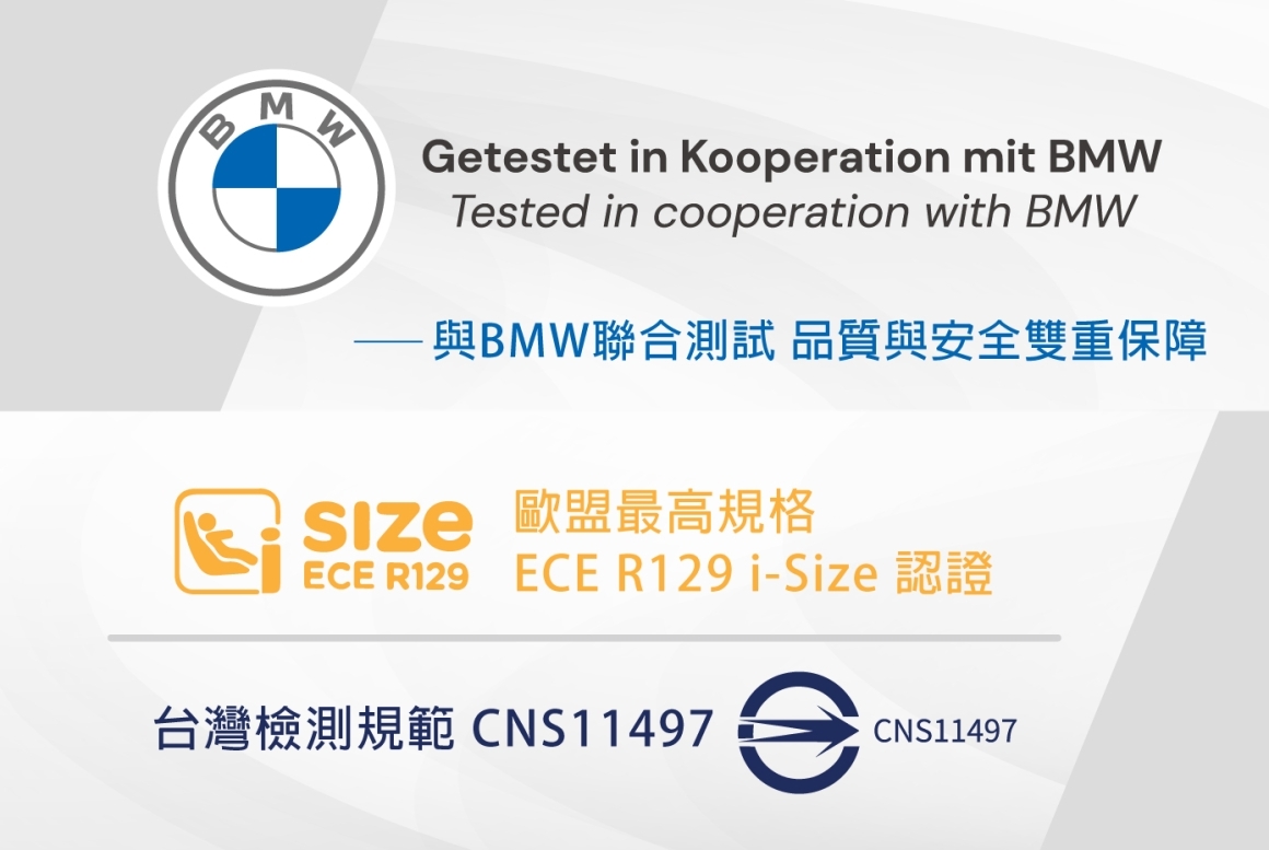 與BMW聯合測試,帶來德系標準的安全守護。小體積、大安全,3-12歲成長守護一次到位!