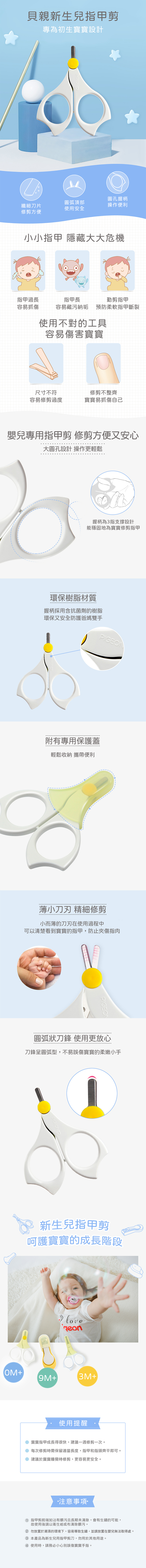 最適合修剪初生嬰兒薄軟的小指甲,防寶寶抓傷自己或指甲內藏匿污垢。