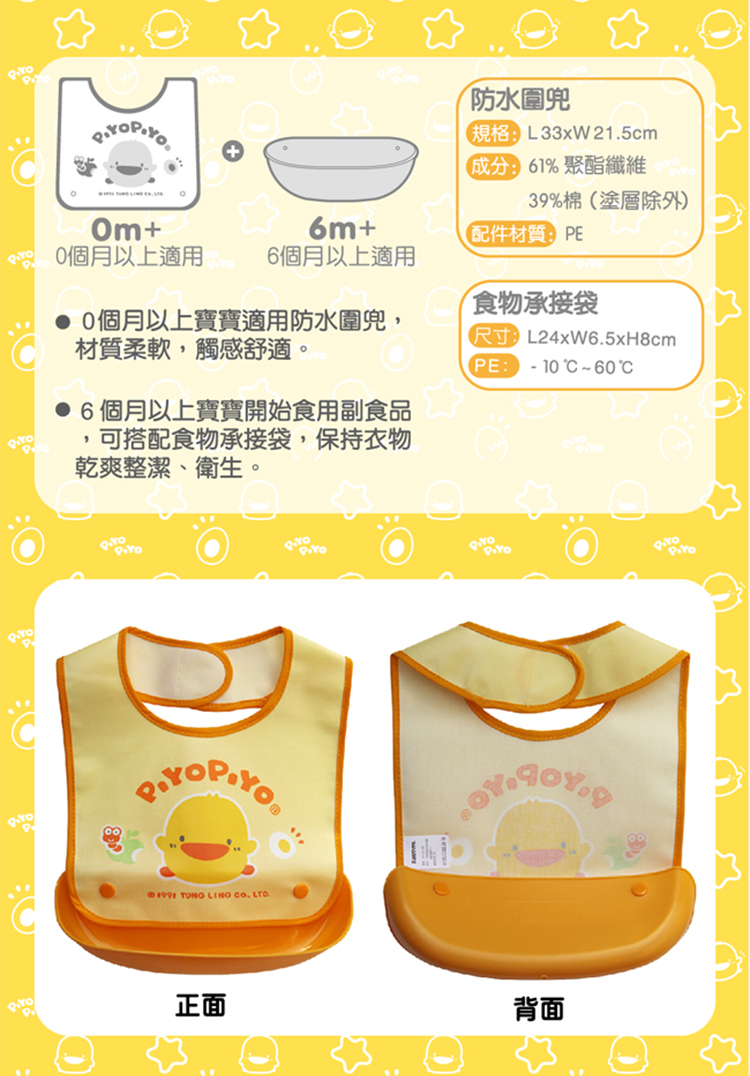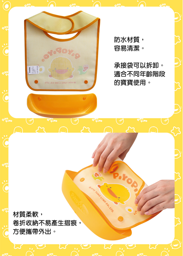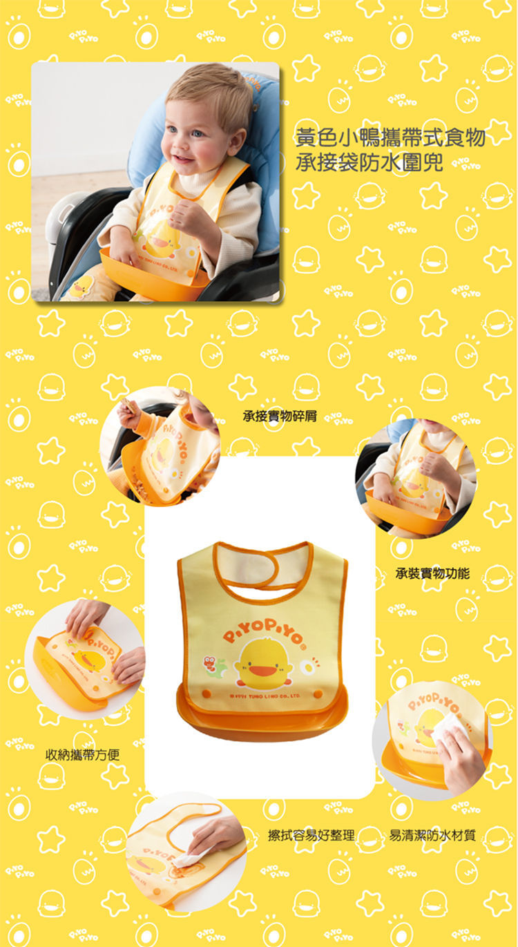 《 PiyoPiyo 黃色小鴨 攜帶式食物承接袋防水圍兜 》