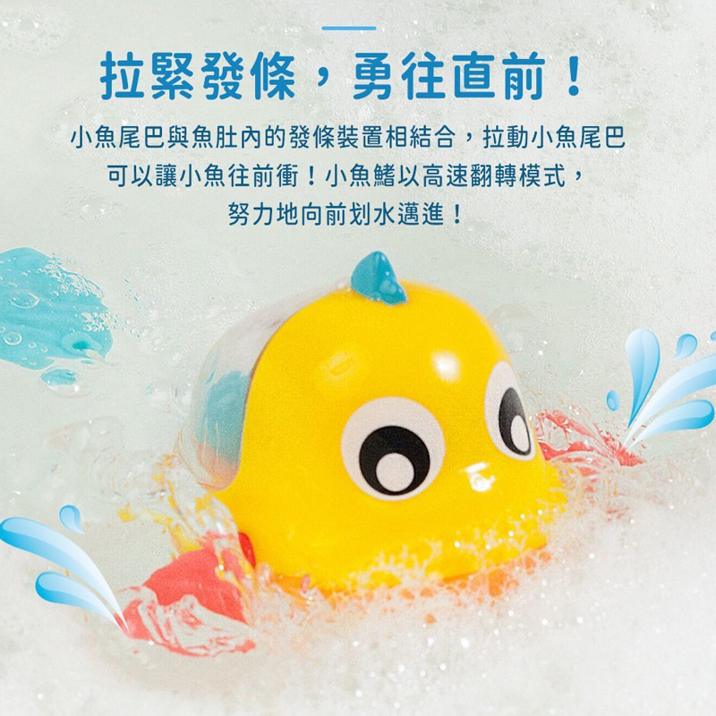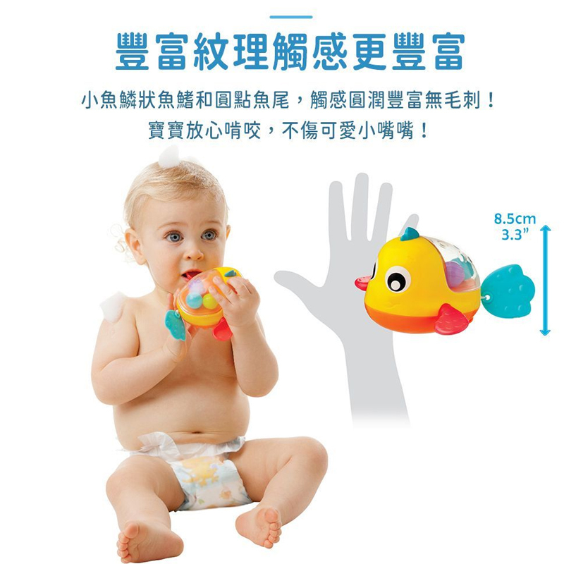 拉動小魚尾巴啟動發條裝置,訓練寶寶小手抓握 |